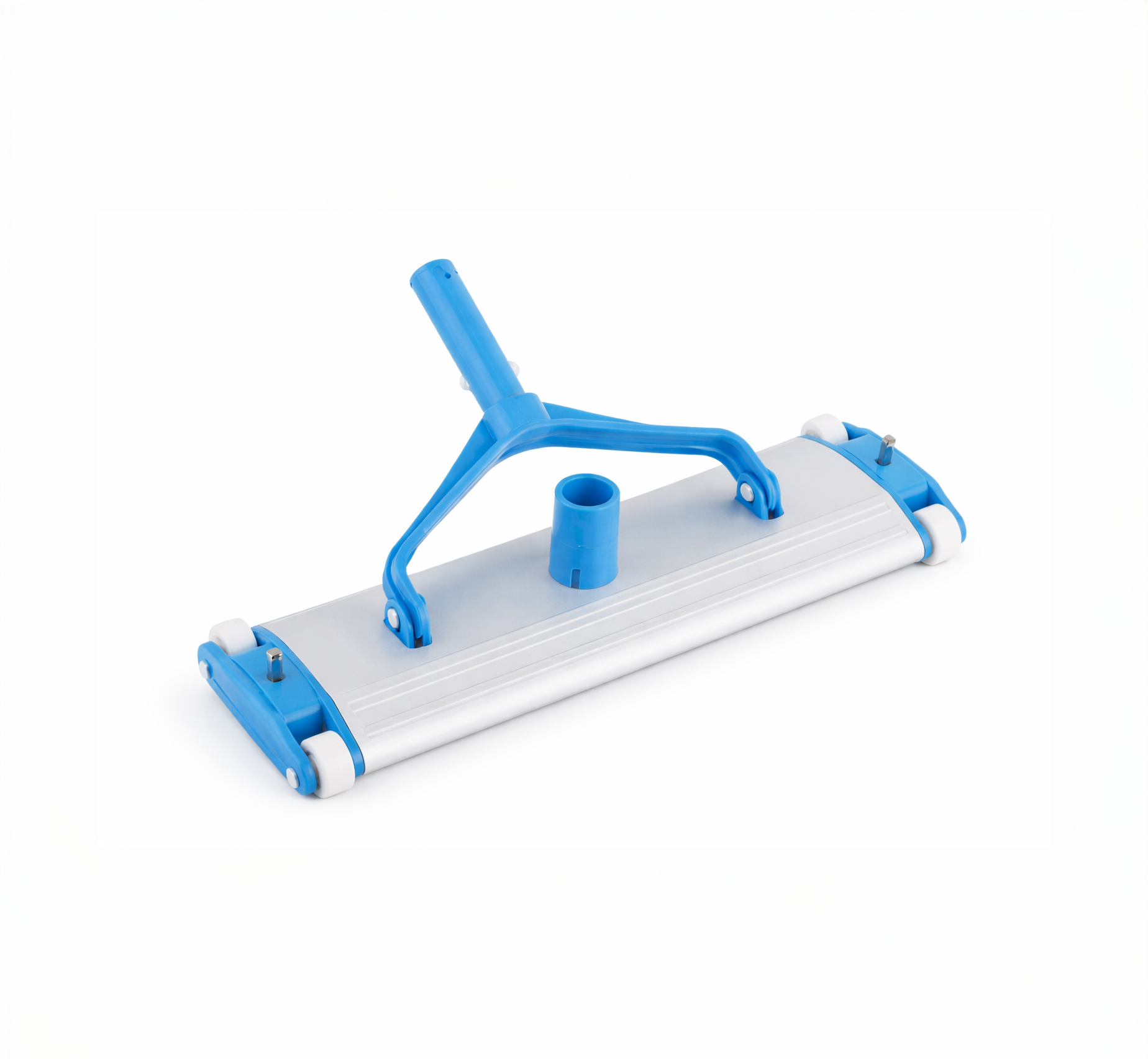 Aspirateur manuel en aluminium extrudé conçu pour le nettoyage efficace du fond et des parois de piscine. Robuste, léger et résistant à la corrosion, il permet d’éliminer facilement les débris lourds (sable, feuilles, sédiments) non captés par la filtration.