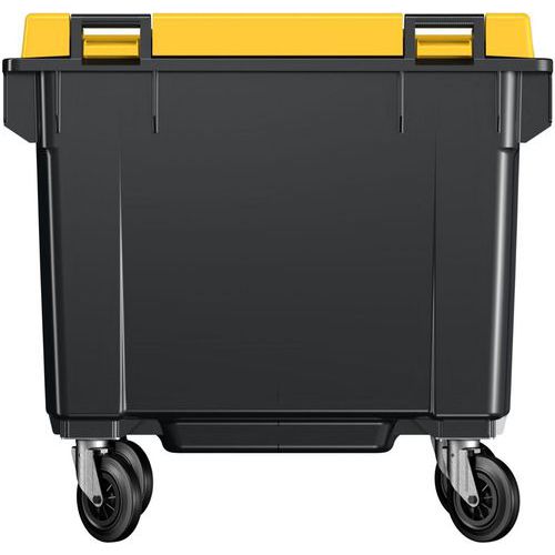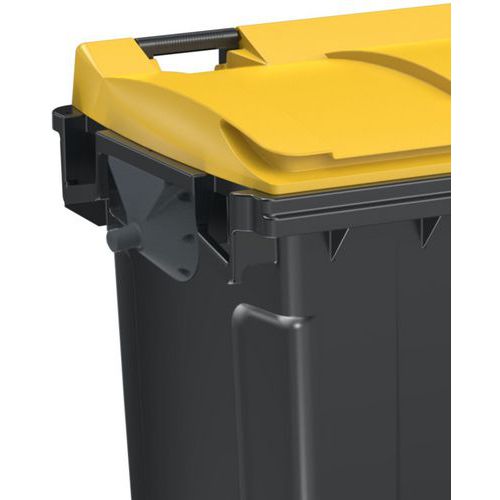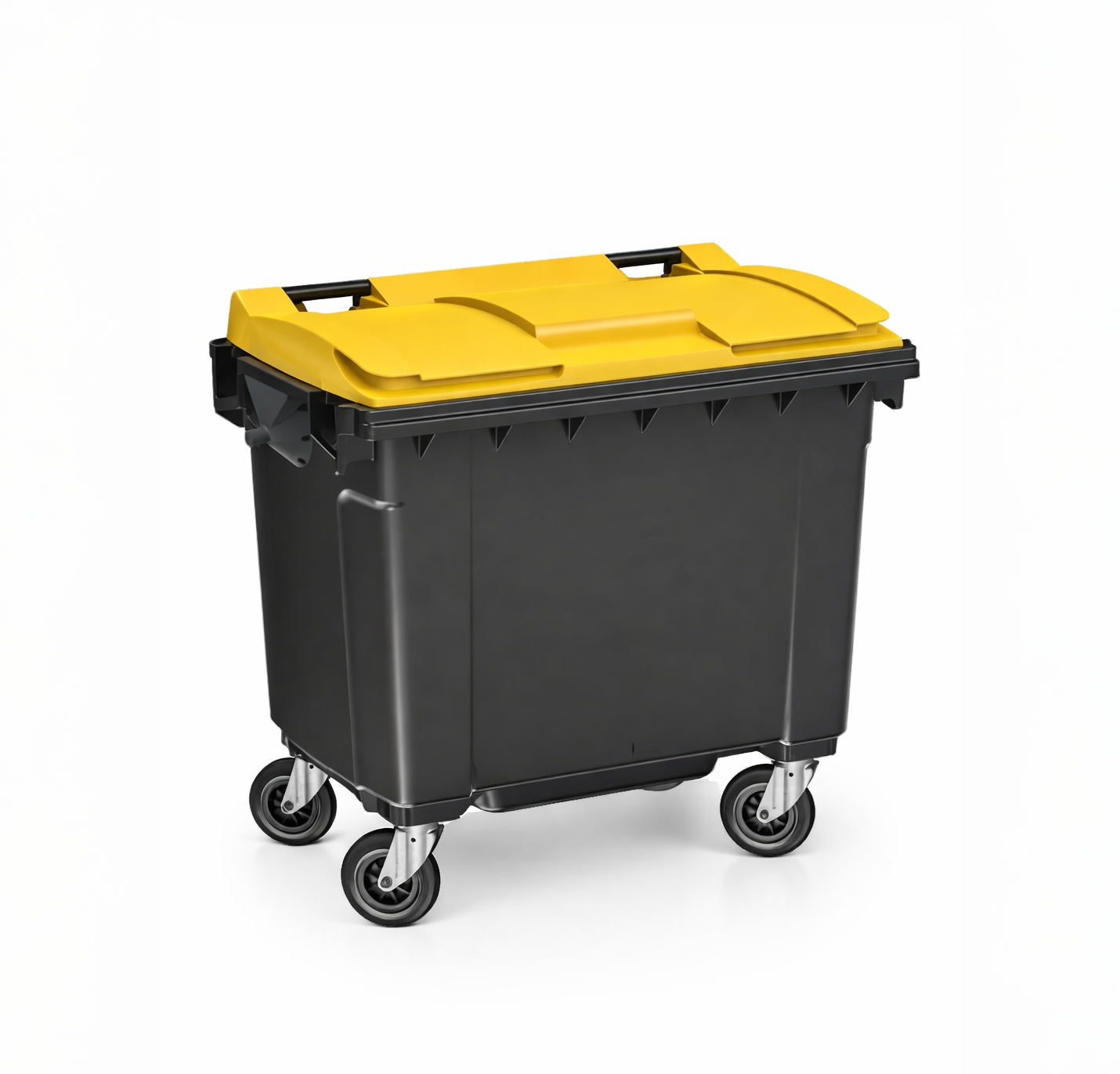 Conteneur à déchets mobile de grande capacité (660L), conçu pour un usage intensif en environnement professionnel. Fabriqué en polyéthylène haute densité (PEHD) stabilisé aux UV, il offre une excellente résistance aux intempéries, aux chocs et aux conditions extérieures.