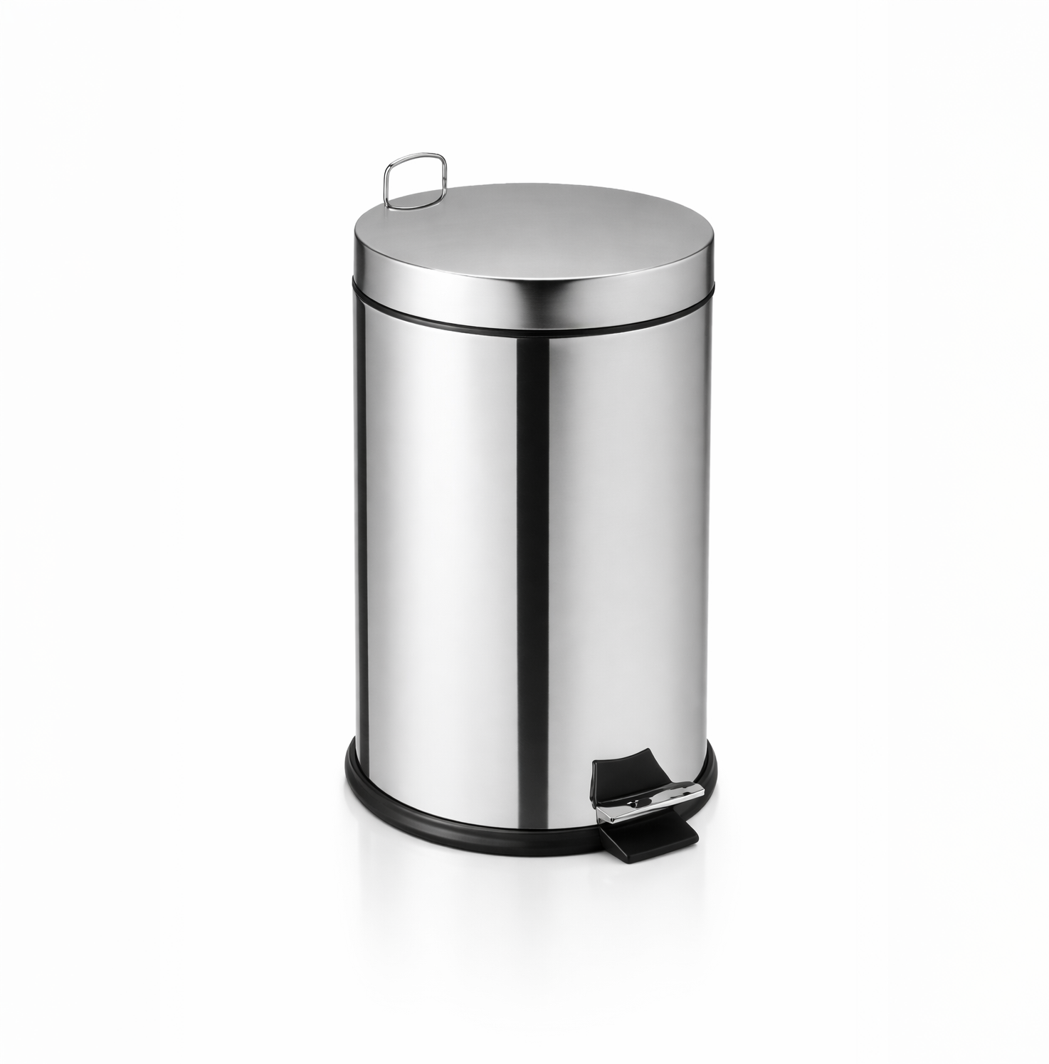 Poubelle en acier inoxydable avec pédale, conçue pour une utilisation hygiénique sans contact manuel. Son design épuré et sa finition inox s’intègrent facilement dans tous les environnements, du sanitaire aux espaces de travail.